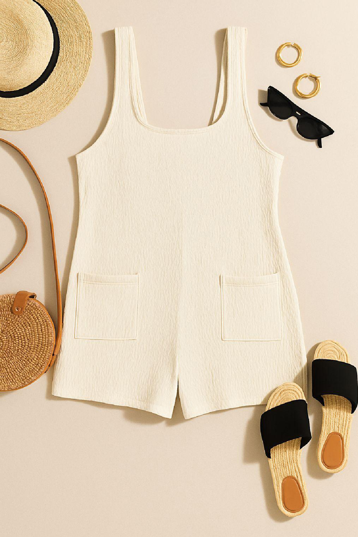 Kadın Beyaz Mini Cepli Tulum Plaj Elbisesi, yaz aylarının vazgeçilmez şık ve konforlu parçalarından biridir. Beyaz rengi ile hem masumiyet hem de zarif bir şıklık sunan bu model, özellikle tatil kombinlerinde ve günlük yaşamda kurtarıcı bir parçadır. Modern tasarımıyla öne çıkan kadın beyaz mini tulum, cepli yapısı sayesinde hem pratik hem de trend bir görünüme sahiptir.