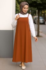 - Her kadının dolabında mutlaka bulunması gereken bu kadın kahverengi askılı jile elbise, hem şık hem de pratik kombinler için ideal bir seçim.