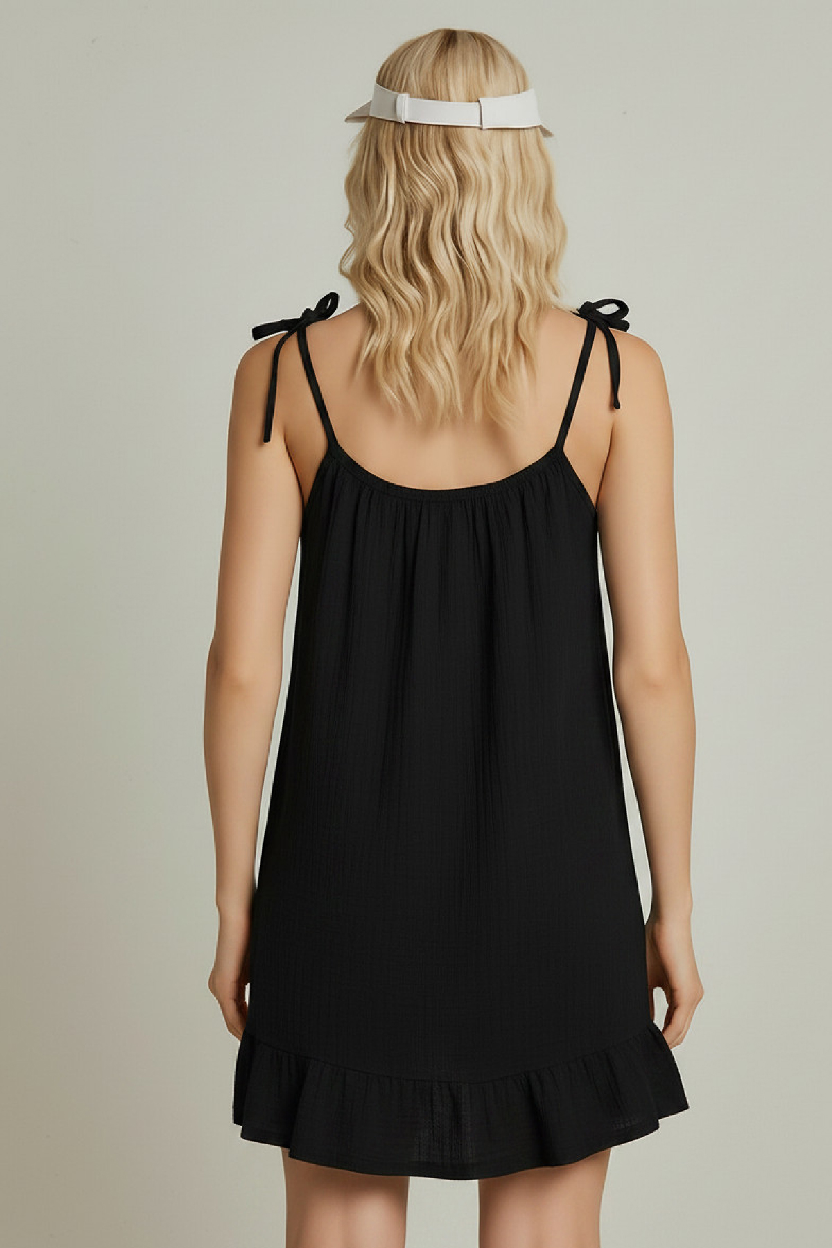 - İnce askılı tasarımı ile omuzları rahatça sergilerken, bağcıklı detayları sayesinde istenilen sıkılıkta ayarlanabilir.